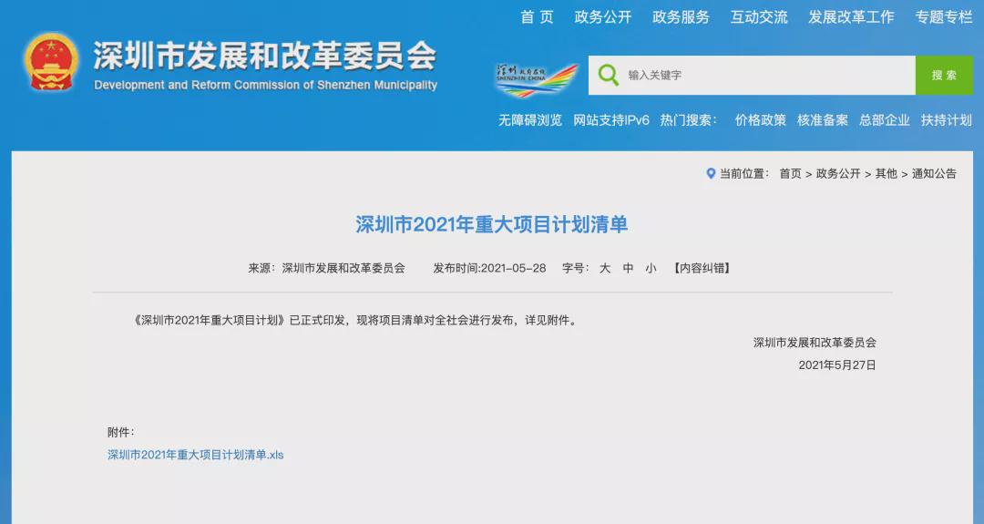 5月27日,市发改委正式对外发布《深圳市2021年重大项目计划》,共有536个项目上榜,总投资28264.9亿元。涉及交通、能源、产业、教育、医疗、城市更新、文化设施、总部基地等方面。