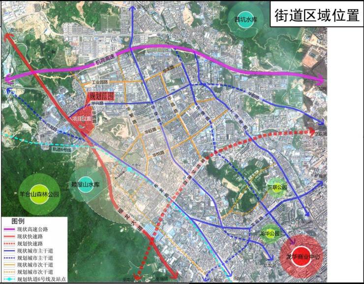上下横朗城市更新单元邻近地铁6号线大浪站,附近商圈为大浪商业中心,包括大浪时代购物广场、纷享城等。项目西侧为福龙路,路对面即是恒大时尚慧谷以及羊台山森林公园,未来地标建筑大浪文体中心也在附近。
