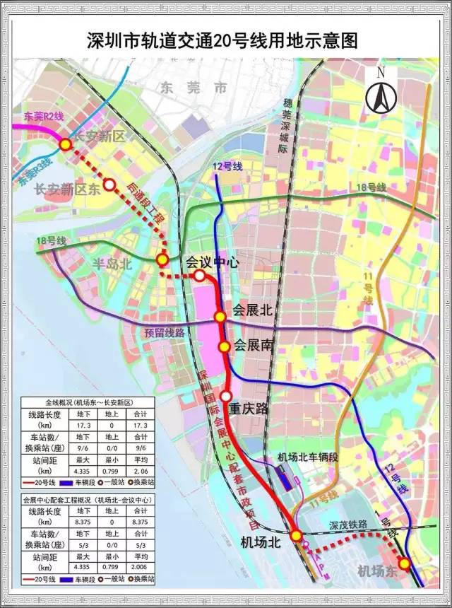 目前,地铁20号线已完成土建总工程量三分之一,已展开主体结构施工,地连墙工程已完成698幅,土方累计完成130万方,将在同一年与深圳国际会展中心同步投入使用。
