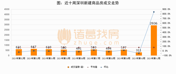 【深圳成交周报】第41周新房成交2936套,二手房1733套,涨价房源2499套