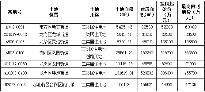 11月25日下午15时,深圳第四批7宗宅地集中出让,其中龙岗有3宗,宝安1宗,龙华1宗,光明1宗,深汕1宗。