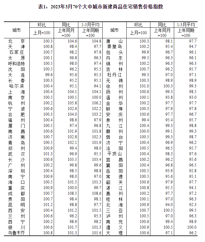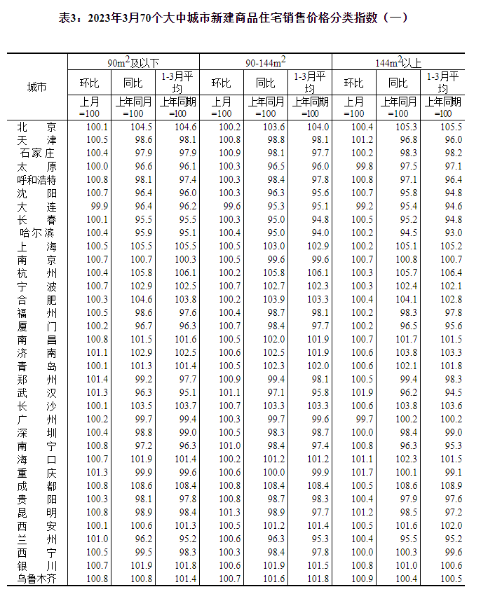 国家统计局4月15日公布了2023年3月份商品住宅销售价格变动情况统计数据。数据显示,3月份,70 个大中城市中商品住宅销售价格上涨城市个数增加,各线城市商品住宅销售价格环比上涨,一线城市商品住宅销售价格同比上涨、二三线城市同比降幅收窄。今年以来,房地产市场出现企稳趋势,随着销售价格上涨城市个数继续增加,表明房地产市场进一步出现积极变化。