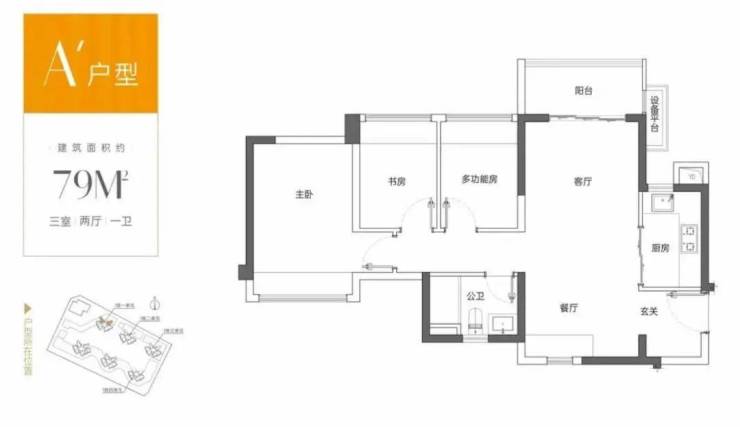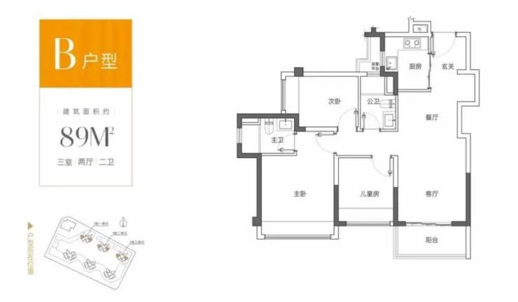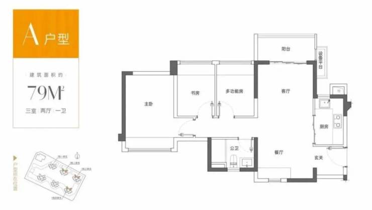 阳光新都荟花园主推的户型为建面约79-90㎡3房单位,现在的户型都做的挺“卷”,在功能设计上都比较细致,这个项目也是,户型实用率比较高,不过户型图上没有标准尺寸。