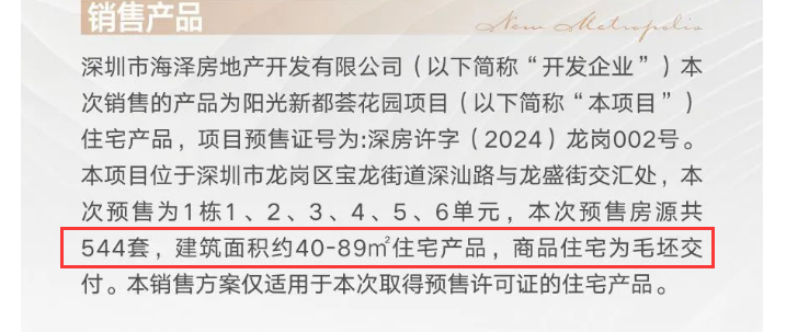 日前,位于龙岗东的阳光新都荟花园(备案名,推广名为中海新都荟)获批预售证,备案住宅544套,主推户型建面约40-89㎡产品,备案单价约3.05-3.53万/㎡,总价区间约151-345万。