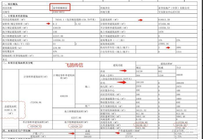 项目用地面积约9.6万平,总建筑面积月61.8万平,共9栋住宅,其中住宅38.8万平,商业3.43万平,容积率6.2,幼儿园面积2970平。层高较高53,绿化40%,车位3081个。
