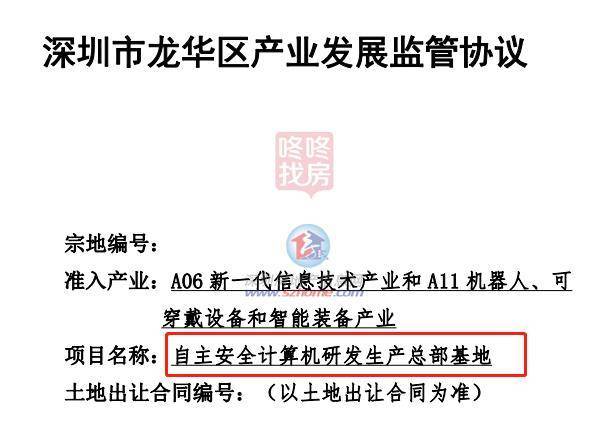 根据产业发展监管协议显示,深圳将建设自主安全计算机研发生产总部基地。