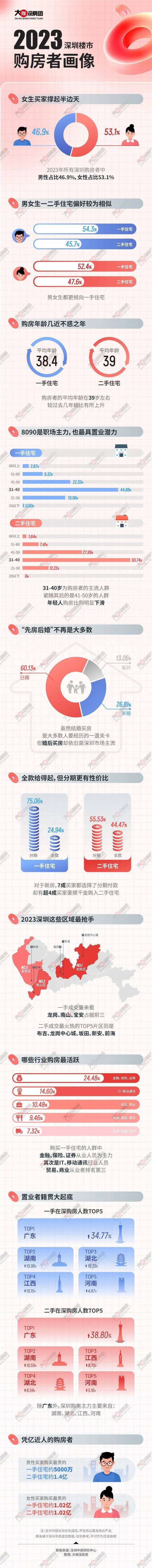 岁末,深圳中原发布2023年深圳楼市购房者画像。用图表来分析2023深圳房字都被谁买走了?