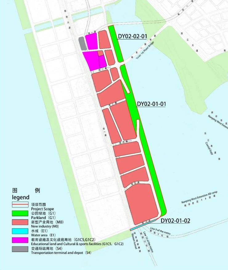 设计范围控制在2022海岸线以内,主要就DY02-01-01、DY02-02-01两块公园绿地进行方案设计,不涉海建设。(最终以主管部门批复指标为准)