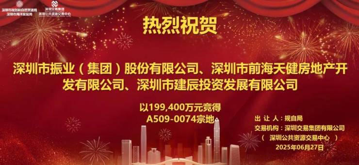 刚刚,振业+天健+建辰投资三家企业以19.94亿元底价联合摘得光明中心A509-0074宗地,综合楼面价约1.83万/㎡。