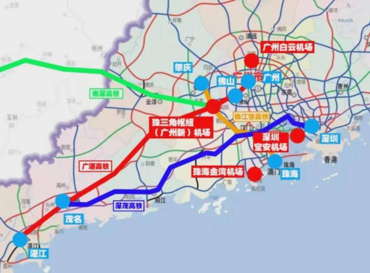 位于肇庆市高要区蛟塘镇和佛山市高明区更合镇交界处的广州新机场,定位为粤港澳大湾区国际航空枢纽之一,广州国际航空枢纽的重要组成部分,大湾区西部综合交通枢纽。