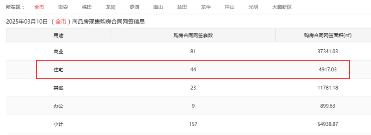 3月10日深圳新房住宅合同网签49套 二手房住宅成交234套