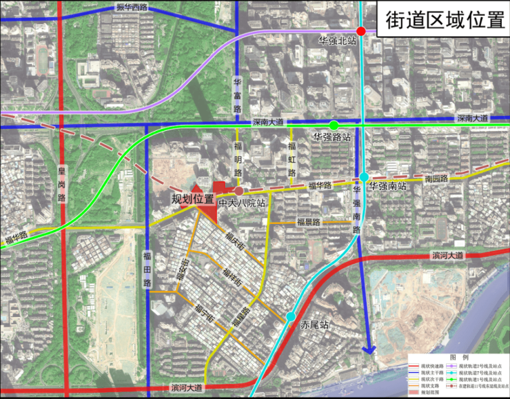 福田市场大厦片区城市更新单元位于福田街道福华路两侧,福明路西侧,项目拆除范围用地面积14234.1平方米,开发建设用地面积8472.3平方米。