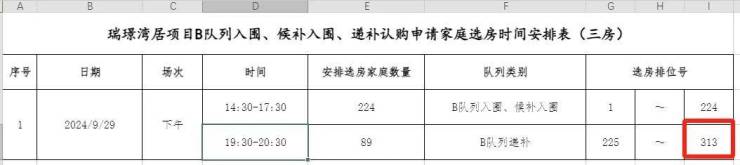 三房户型房源112套,选房时间9月29日下午及晚上