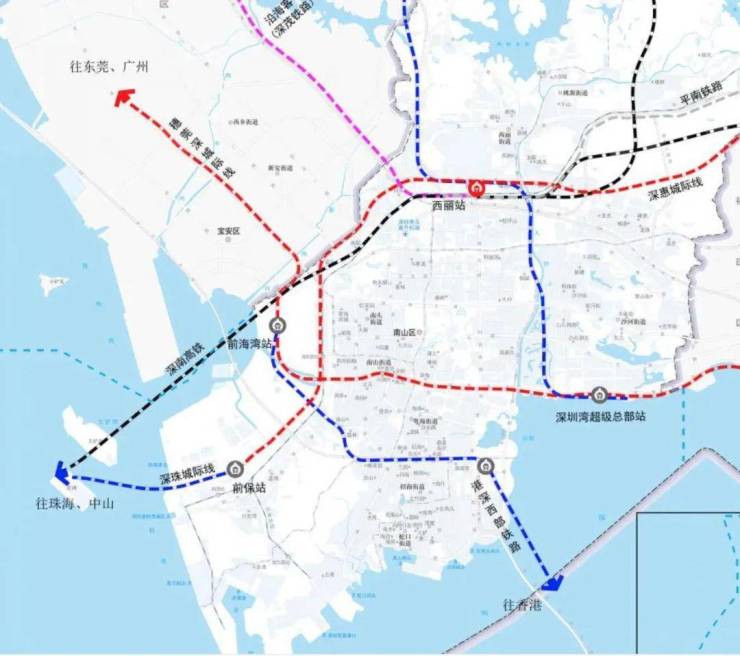 据此前公布,深珠通道初步线位由深圳西丽站引出,在前海设置站点,经孖洲岛一路向西至珠海。