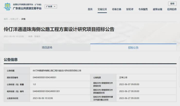 据此前广东省公共资源交易平台发布的《伶仃洋通道珠海侧公路工程方案设计研究项目招标公告》显示,深珠通道为公铁复合通道,珠海侧将设淇澳、北围、下栅、港湾大道唐家四个立交互通。