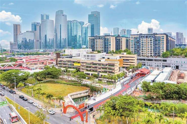 据介绍,深铁前海时代作为全市重大项目,自开工以来就备受市民关注。因总建筑面积超百万平方米,深铁集团采取一体化、立体式开发建设,以多元复合型标杆社区为未来城市生活作出示范。其中,为片区配建的一所9年一贯制学校——前海港湾学校已于2019年投入使用。该学校位于滨海大道北侧、桂庙渠河畔,自学校开学以来,深铁集团便一直积极推动学校周边市政道路建设,让学校师生及社区居民更安全、便捷地出行。
