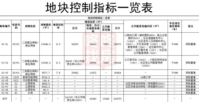 规划容积218070㎡,其中住宅141190㎡(含公共租赁住房16950㎡),商业、办公及旅馆业建筑63440㎡,公共配套设施13440㎡(含12班幼儿园4800㎡、占地面积3600㎡;公交首末站2200㎡;社区健康服务中心1400㎡;老年人日间照料中心800㎡;便民服务站(社区服务中心)450㎡;社区管理用房340㎡;社区警务室100㎡;文化活动室1050㎡;小型垃圾转运站150㎡;社区级公共配套用房2150㎡)。