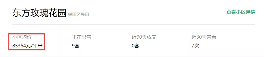 而当时位于福田的东方玫瑰花园,每平只卖6800元,现如今二手盘挂盘在85364元/平,翻了整整12.6倍!