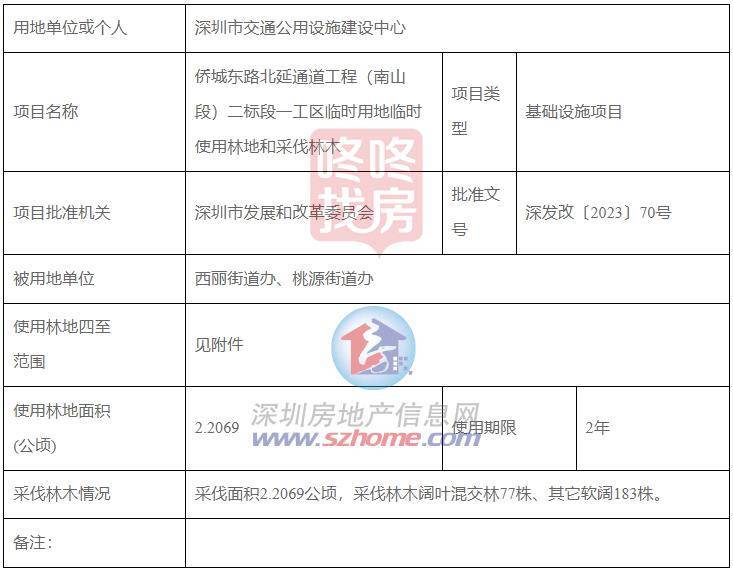 深圳市规划和自然资源局南山管理局公示《侨城东路北延通道工程(南山段)二标段一工区临时用地使用林地和拟采伐林木》。