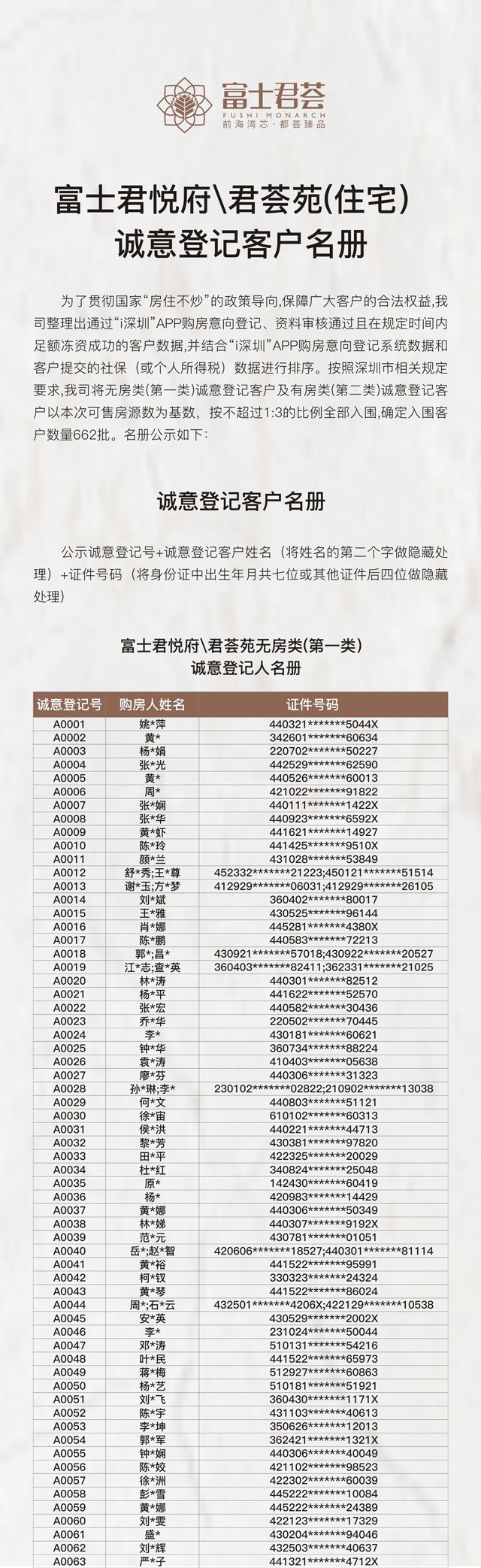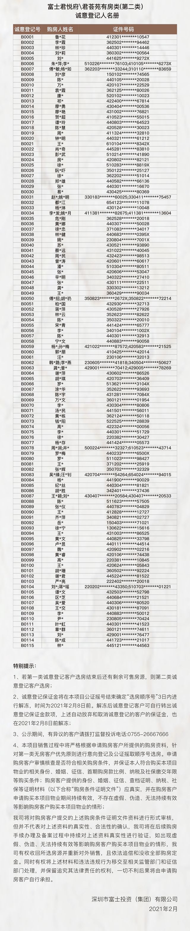 刚刚,富士君悦府/君荟苑公证摇号结果出炉。2月5日,9:00正式选房。(下拉查看摇号结果)
