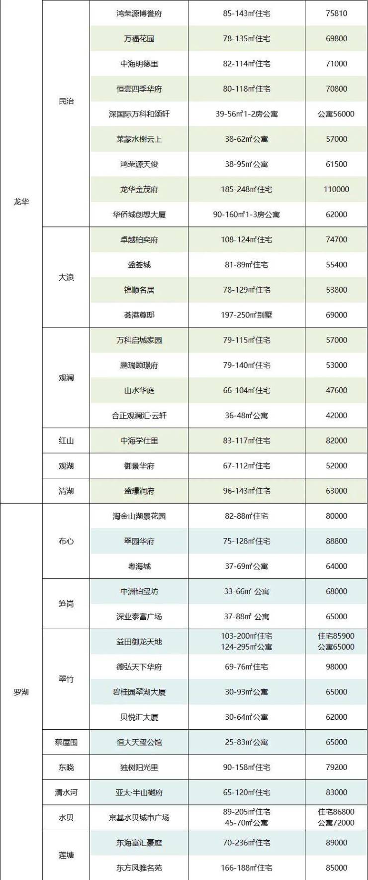其余区域,如光明最小面积79起步,宝安最小面积预计66㎡起步,龙华的上车户型60㎡起,龙岗则有坂田的吉祥花园鸿悦居托底,住宅建面57㎡起步。给了刚需购房客足够多的选择空间。
