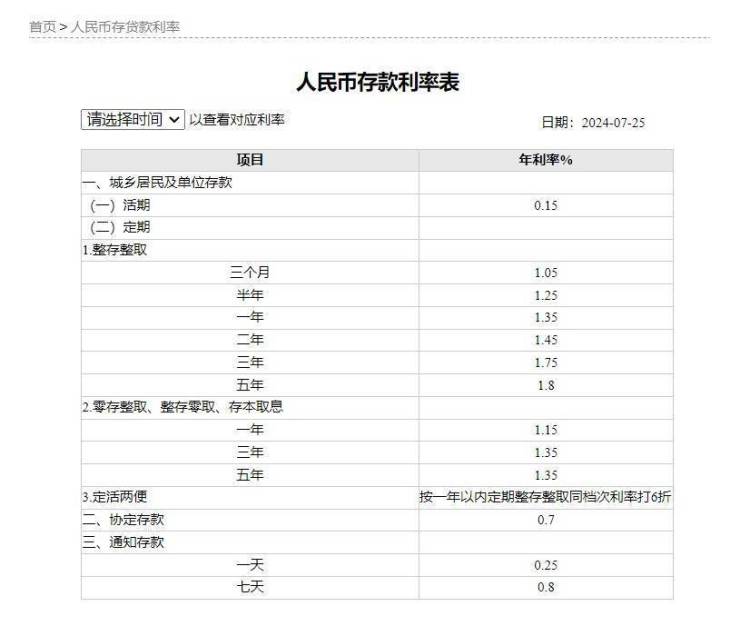 与此同时,中国农业银行官网显示,农行于7月25日下调了人民币存款利率,其中定期整存整取三个月、半年期、一年期利率均下调10个基点,分别为1.05%、1.25%、1.35%;二年期、三年期、五年期利率分别下调20个基点,至1.45%、1.75%、1.80%。零存整取、整存零取、存本取息利率下调10个基点,通知存款挂牌利率下调10个基点。