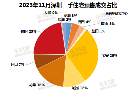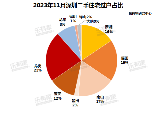 11月龙岗二手住宅过户量占比23%,达到720套,环比上涨9%。排名第二的是福田,过户591套,环比上涨17%。除宝安与坪山外,其他区域11月二手成交均呈现上涨态势。