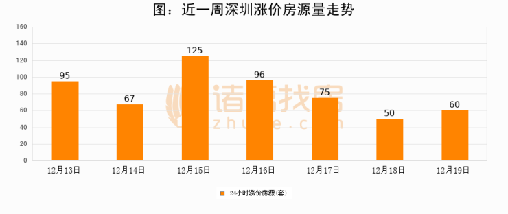 根据诸葛找房数据显示,深圳24小时涨价房源量为60套,较12月18日增加10套,环比上涨20%。与此同时,涨价房源占比小幅扩大,业主信心有所提升。