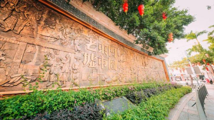 东门老街的历史可以追溯至明代中期,最初它的名字还是“深圳旧墟”。当时附近一带陆续出现了一些村落,如赤勘村、罗湖村、隔塘村和湖贝村等。几个村的族人于村落间建起集市,便是东门最早的雏形,也就是说,东门最早只是一个乡间集市。1979年“深圳”成为市名,深圳墟则改称“东门老街”。如今,在东门文化广场就有一幅老东门墟市图,由青铜铸造,宽3米、长16.5米,向游客展示着明清时期东门墟市店铺林立、客流熙攘的岭南民俗风情。