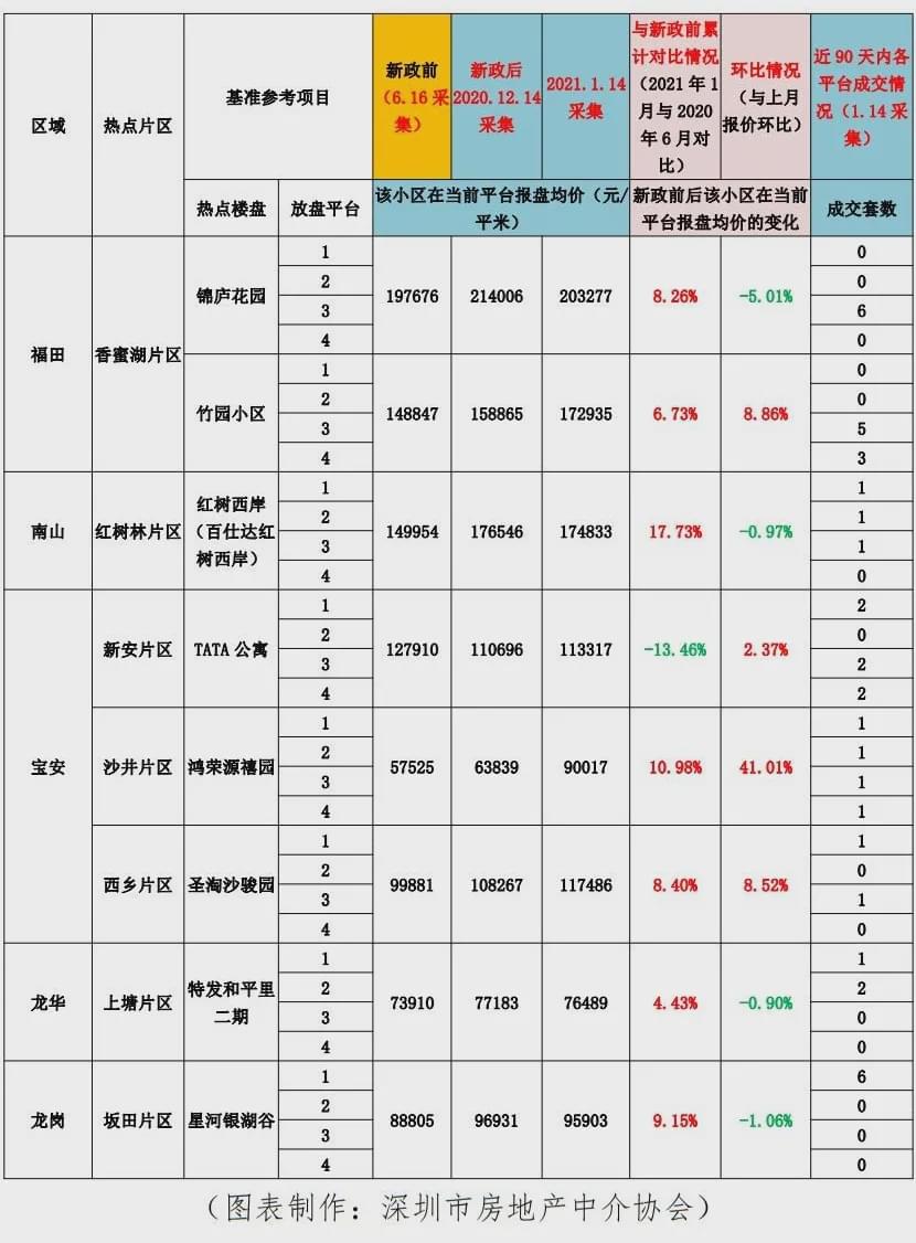 有房源报价降了5%!刚刚, 深圳1月热点房源报价观察表出炉