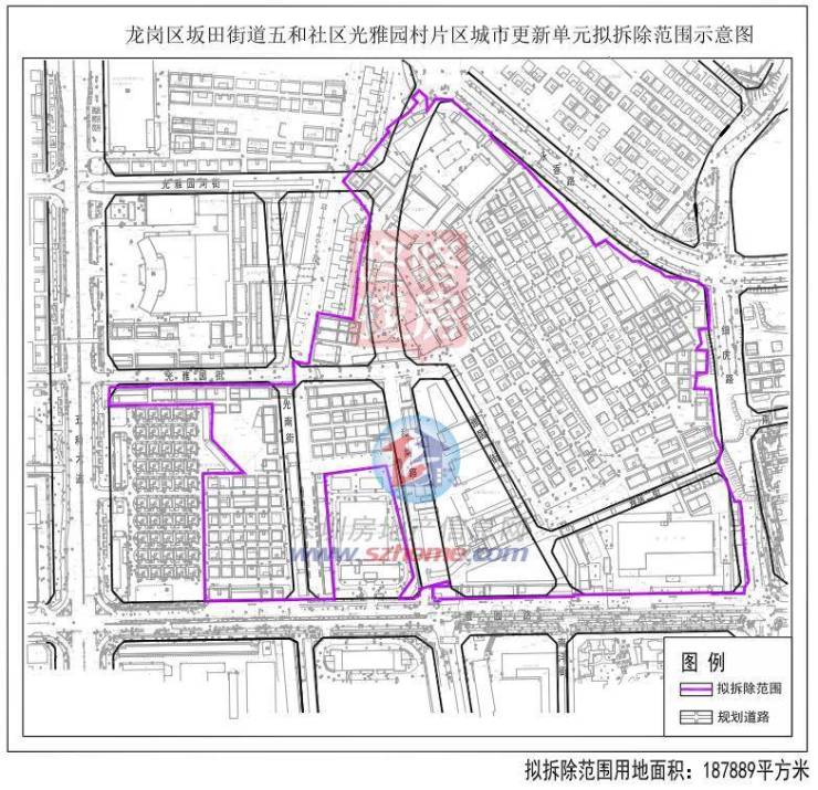 3月3日,龙岗区坂田街道五和社区光雅园村片区城市更新单元计划(草案)公示。