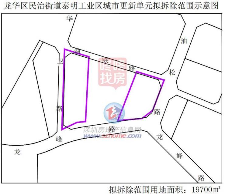 泰明工业区城市更新单元位于龙华老城区,民治街道油松路与新牛路交汇处,项目有两个地块组成,拟拆除范围19700平方米。
