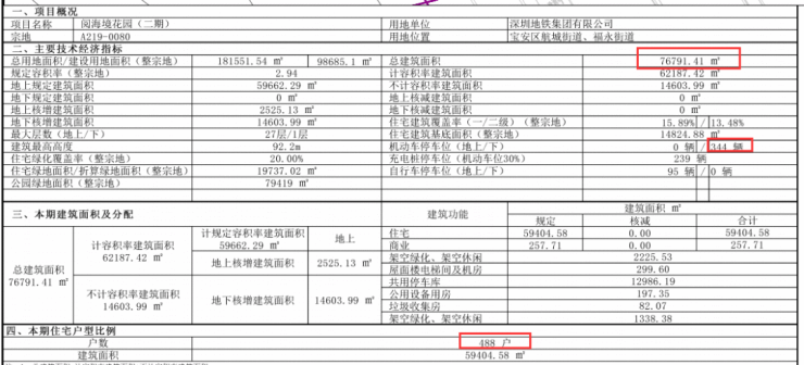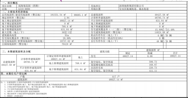 阅海境四期建面约4.9万㎡,容积率2.94,规划417套房源,本宗地块以纯住宅为主。套均面积约115㎡,是本项目中套均面积最小的。