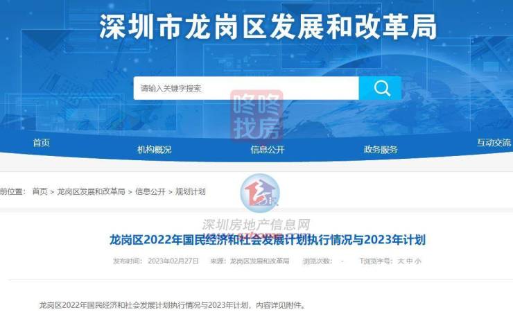 2月27日,龙岗区发布了2022年国民经济和社会发展计划执行情况与2023年计划。