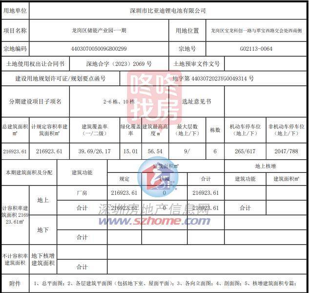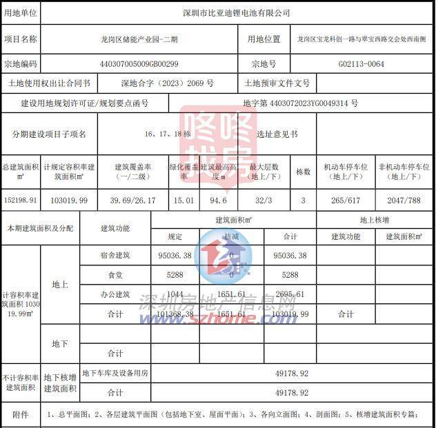 用地单位为深圳市比亚迪锂电池有限公司,已核发该项目(2-6栋、10栋、16-18栋)的《深圳市建设工程规划许可证》。