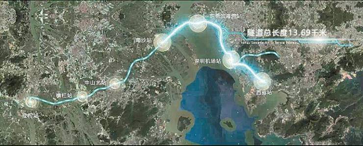 作为我国“八纵八横”高铁网沿海通道的重要组成部分,深江铁路线路正线从规划的深圳枢纽西丽站引出,经深圳宝安、东莞滨海湾、广州南沙、中山至江门,正线全长116公里,建设工期五年半(不含先开段)。全线共设深圳西丽(不含)、深圳机场东、东莞滨海湾、南沙、中山北、横栏、江门站等7座车站。深江铁路深圳西丽至南沙段设计时速200公里,南沙至江门段设计时速250公里。