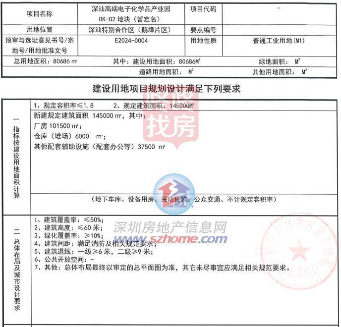 根据规划设计要点表显示,3宗地都将建设深汕高端电子化学品产业园。其中: