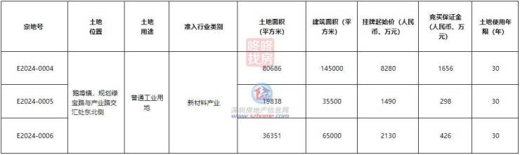4月3日,深圳公告3宗工业用地,位于深汕合作区鹅埠镇,计划于5月6日出让。