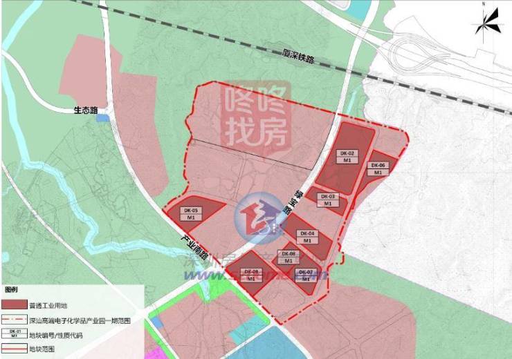 四至范围:园区近期范围北至厦深高铁,南至杨安村口,西至格田村,东至大水岗;