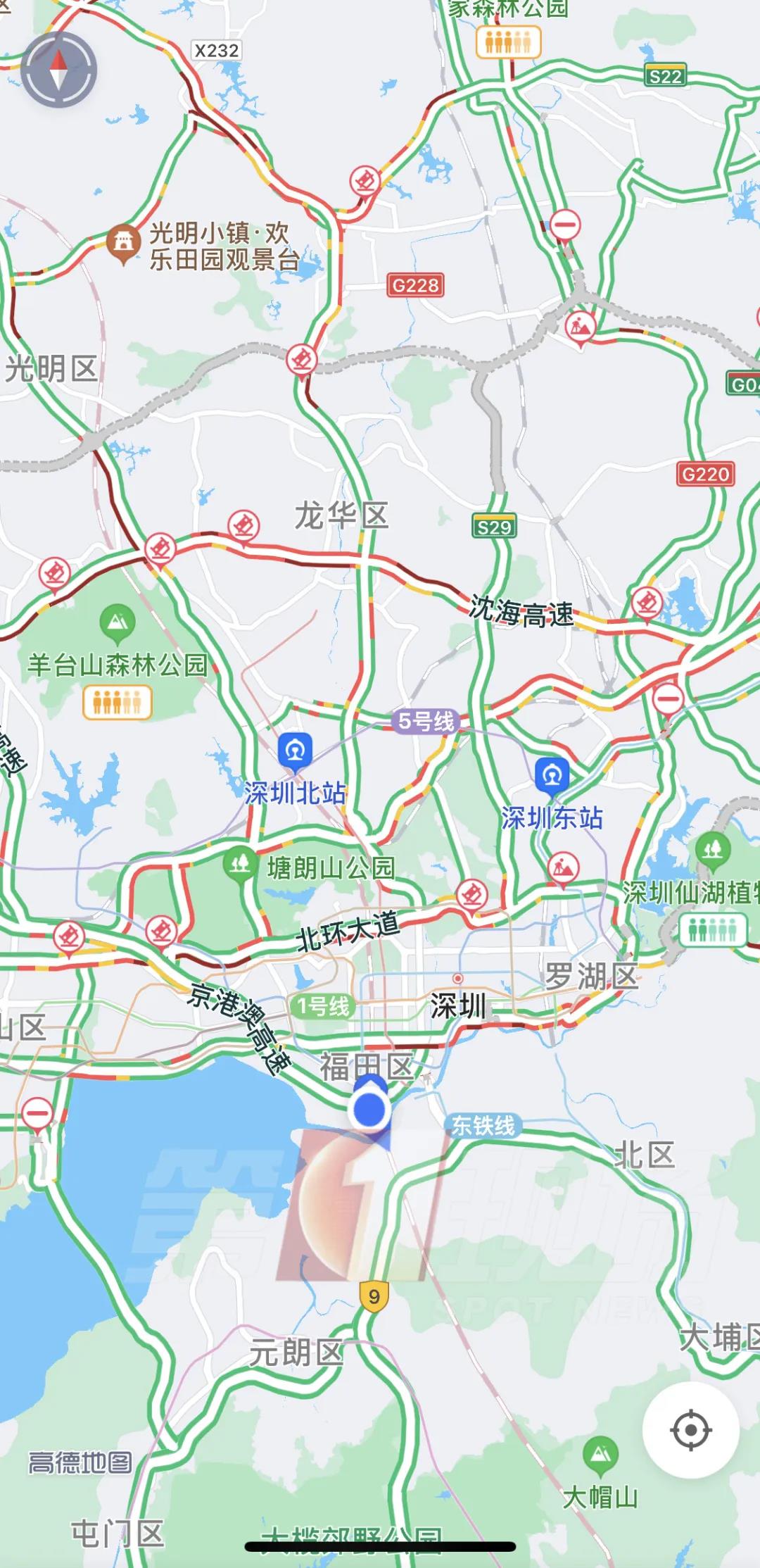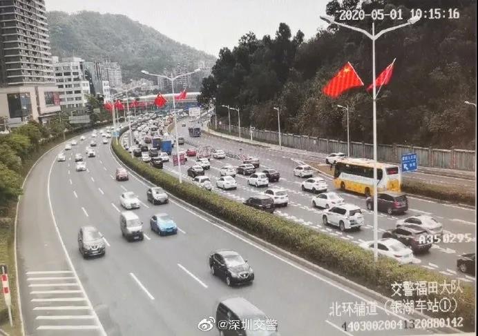 彩田路北行方向,彩田北环立交至彩梅立交路段车行缓慢▼