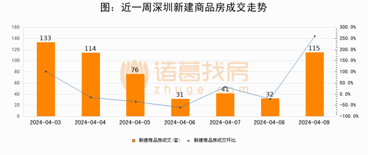 【深圳成交日报】04月09日新房成交115套、二手房238套;涨价房源33套