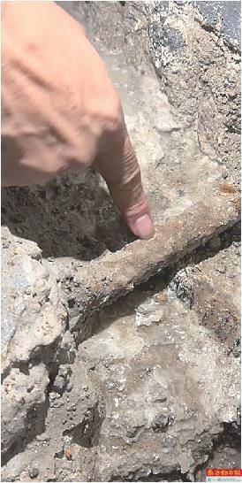 在现场,业主用工具打开了部分钢板,排水沟全貌暴露在视野内。可以明显看到,由于排水沟底部高低落差,部分沟渠低洼处已积蓄较多水量,但无法流出。而在另一处沟渠内,承重墙暴露在外的钢筋因泡水而锈蚀。“我们现在可是在地下10多米的位置,泥土压力是很大的。如果不进行任何处理,一旦钢筋锈穿,墙壁可能有垮下来的风险,主体结构也撑不了多久。”同行业主表示担忧。