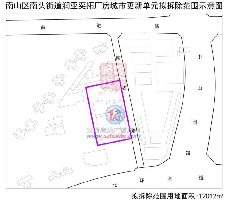 润亚奕拓厂房城市更新单元拆除用地面积12012平方米。