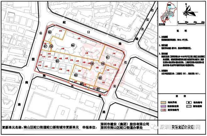 蛇口新街城市更新单元位于南山区蛇口街道蛇口新街以南、石云路以西、南水路以北、公园南路以东围合单元地块内。