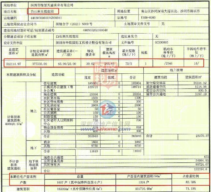项目一期(01-10)地块,位于南山区深南大道以北、沙河东路以东,宗地号T308-0083,项目名为白石洲天悦花园。