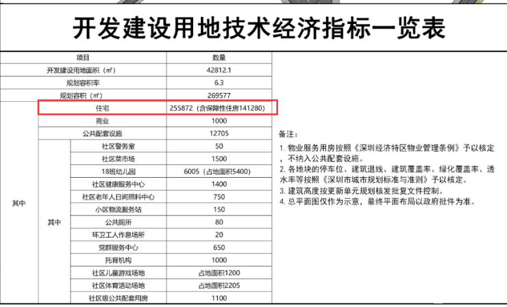 项目开发建设用地面积42812.1㎡,规划容积269577㎡。其中,住宅255872㎡(含保障性住房141280㎡),商业1000㎡,公共配套设施(含地下)12705㎡,包括18班幼儿园、社区菜市场等。另配建1200㎡社区儿童游戏场、2205㎡社区体育活动场地。
