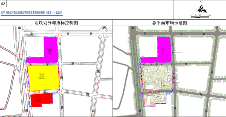 义学街城市更新单元位于南山大道与玉泉路交汇处东南侧,位于南山古城对面,临近地铁12号线中山公园站。