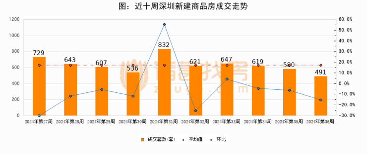 【深圳成交周报】第36周新房成交491套,二手房1060套,涨价房源236套