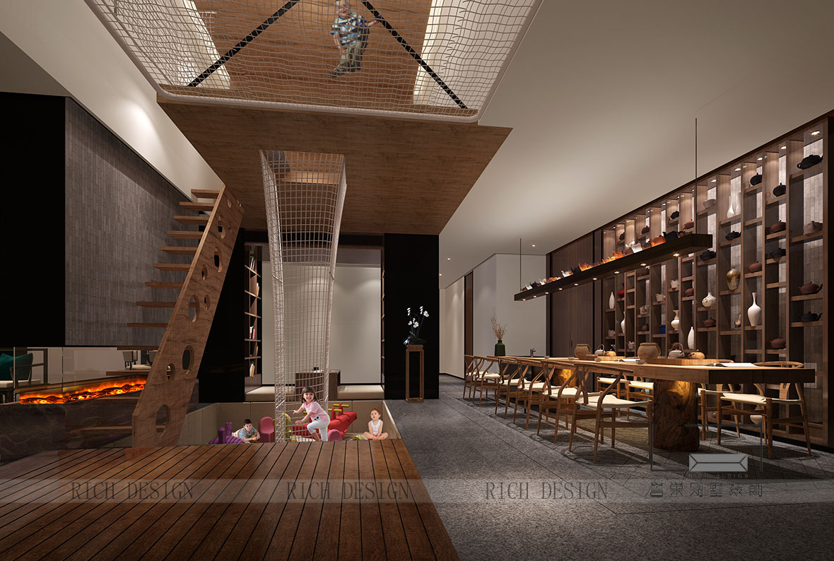 现代的别墅地下室实际上是一种半地下室,通风采光优良,在这里也可以随心所欲地设计自己喜欢的风格茶室,演练茶道,品味一种清新淡雅的生活。
