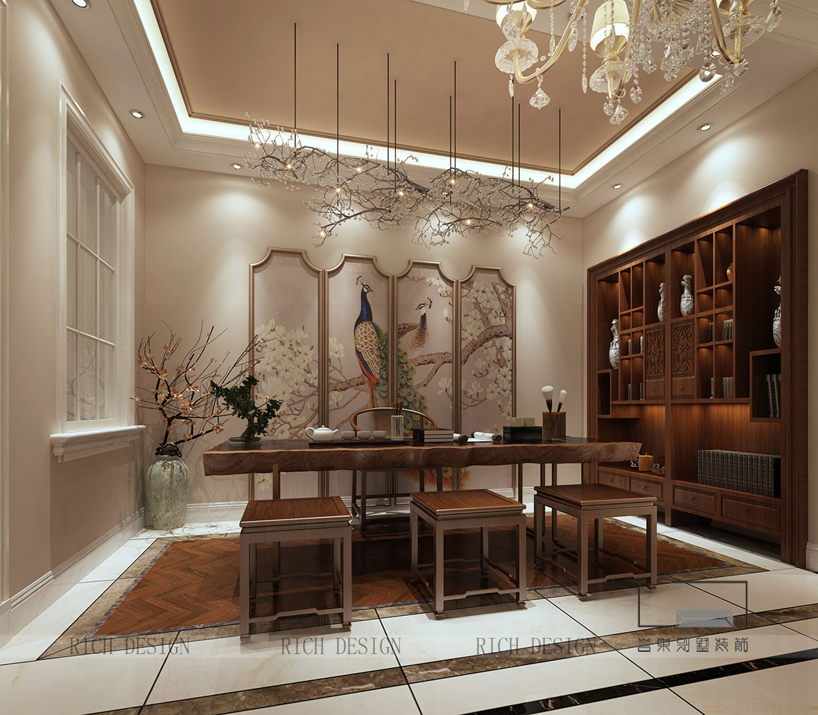别墅中式书房装修设计效果图